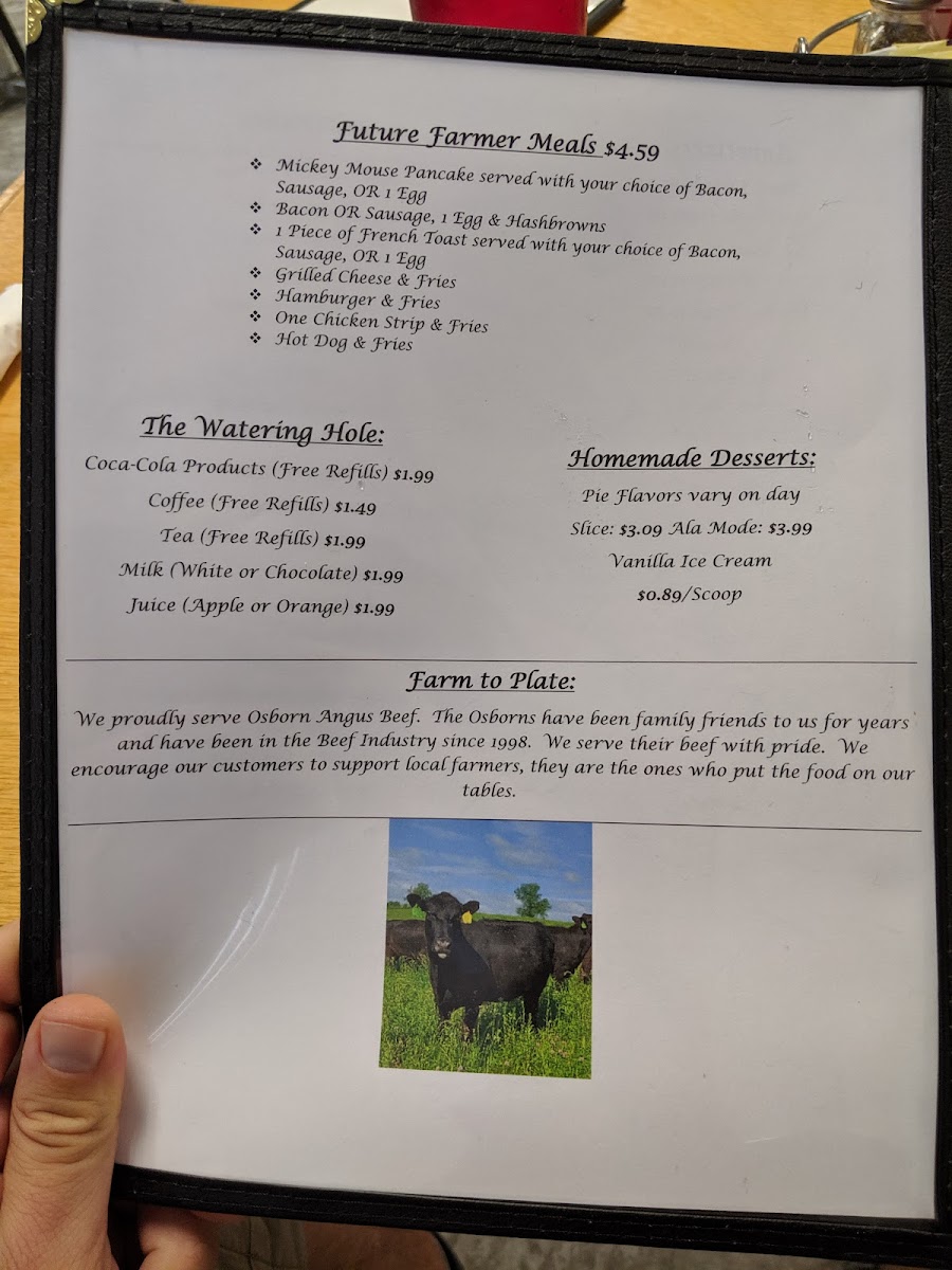 “ Super cute diner! The names on the menu are all pasture relates. The decore is just as cute as can be, with a country theme. The staff was super friendly but could have used a second waitress. The food was really good if you are looking for breakfast the omelets are top notch. If you want lunch, give the tenderloin a try. You won't be disappointed. ”